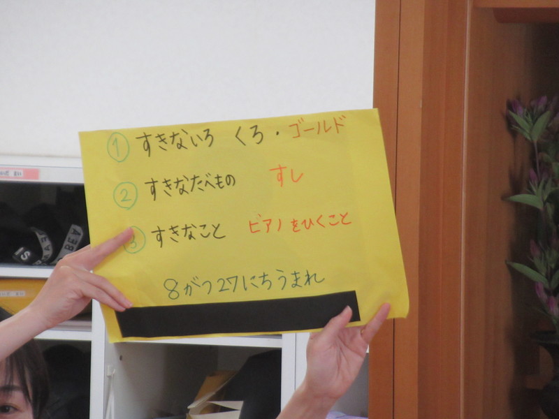 自己紹介に続き,紫原保育園にまつわるクイズや保護者の方からの「我が子のいいなーと思うところ」の紹介で盛り上がりました。