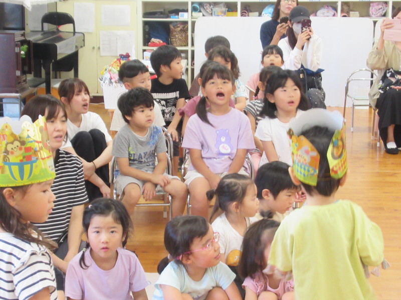 お祝いされる子どもたちも,お祝いする子どもたちも,みんなニコニコ笑顔の,楽しい誕生会になりましたよ!!