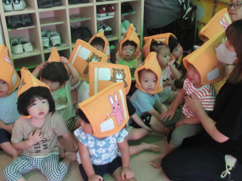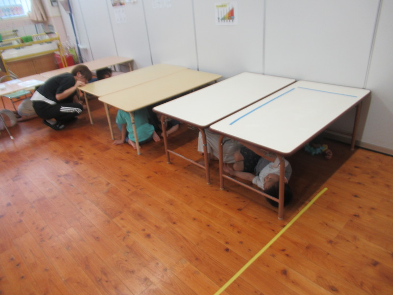 あいにくの雨でしたので,園庭には避難しませんでしたが,スムーズな避難ができました。
