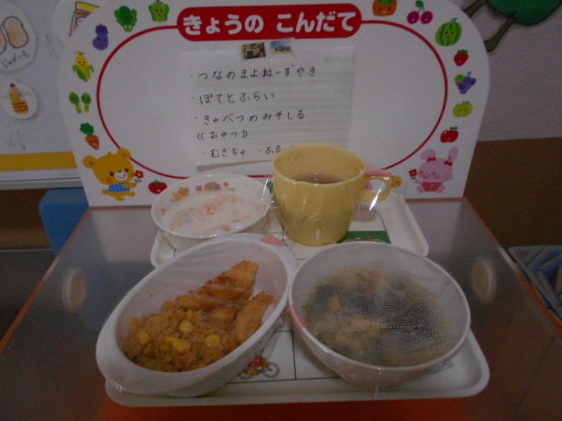 《献 立》・ツナのマヨネーズ焼き ・ポテトフライ ・キャベツの味噌汁