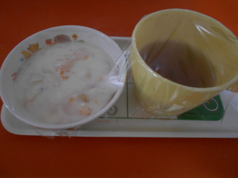 《おやつ》・麦茶 ・フルーツヨーグルト