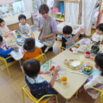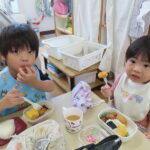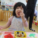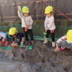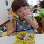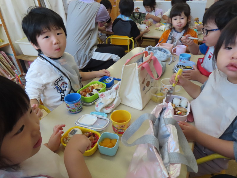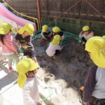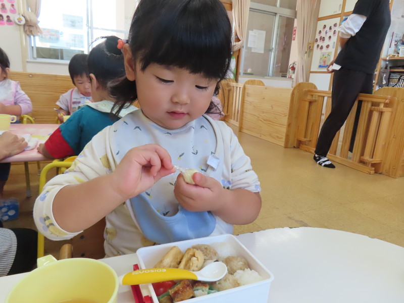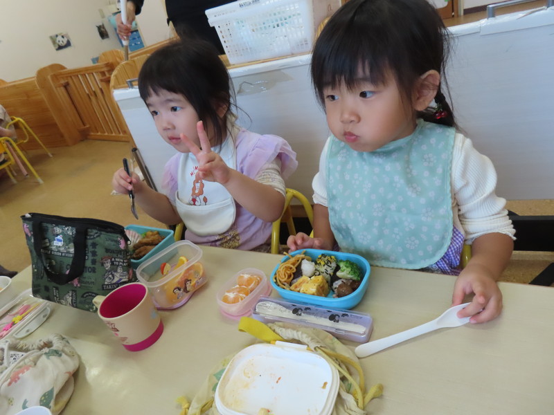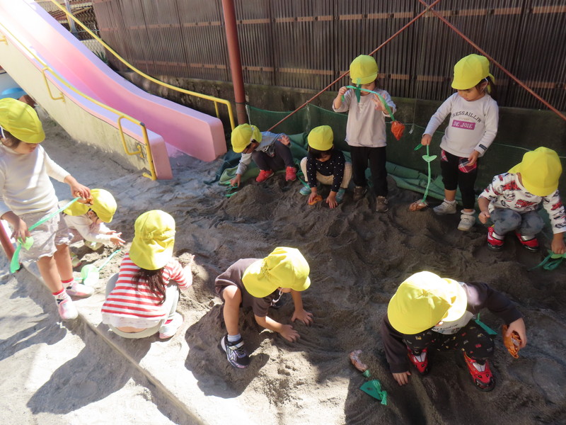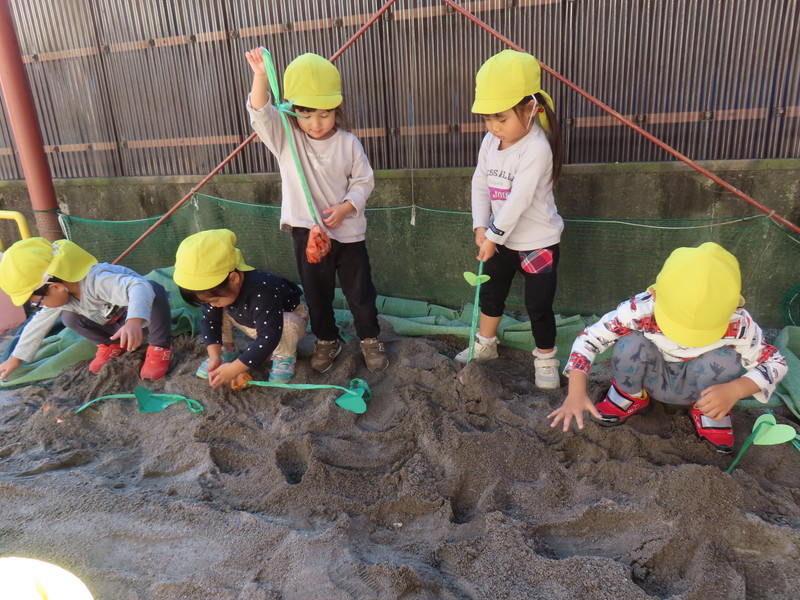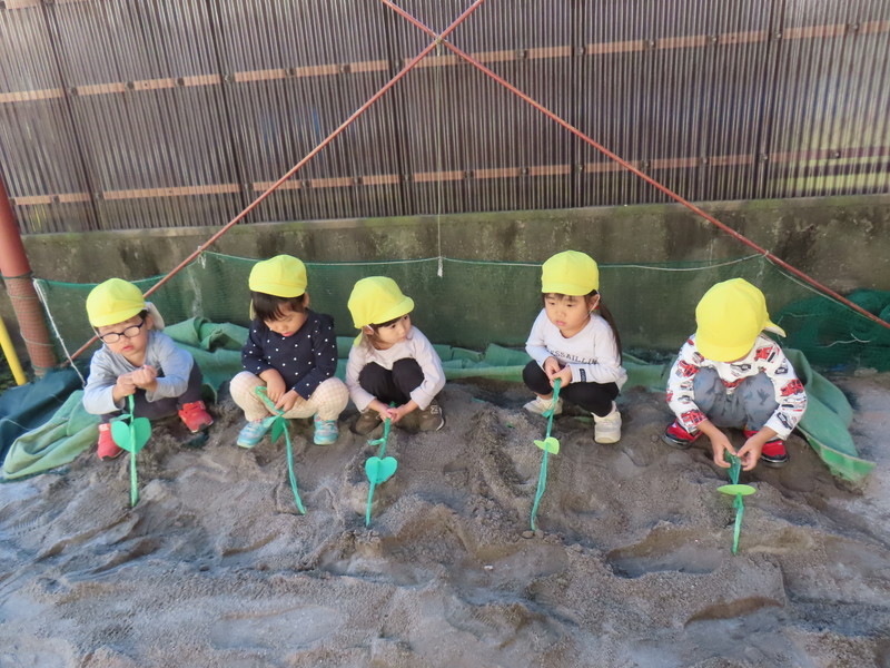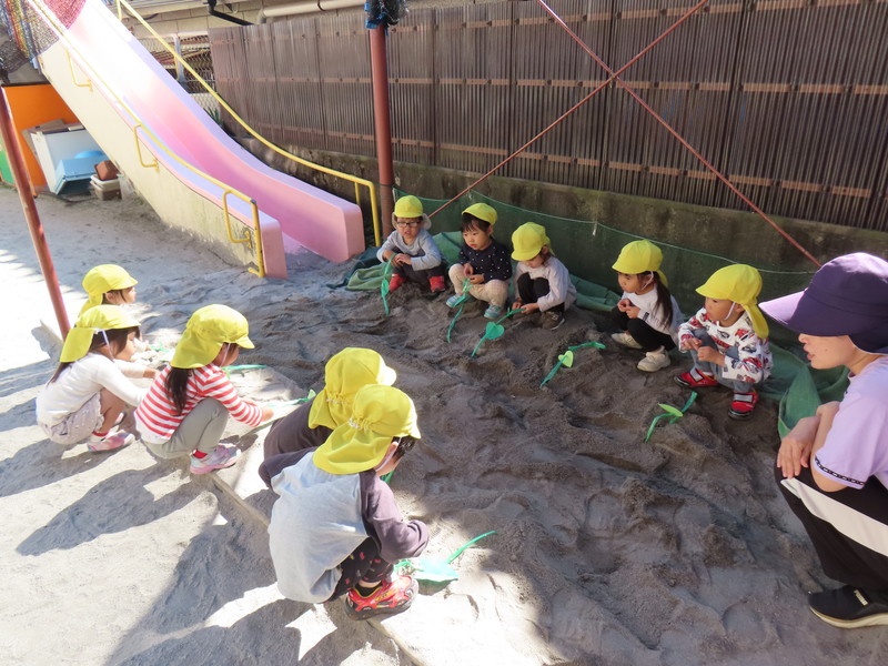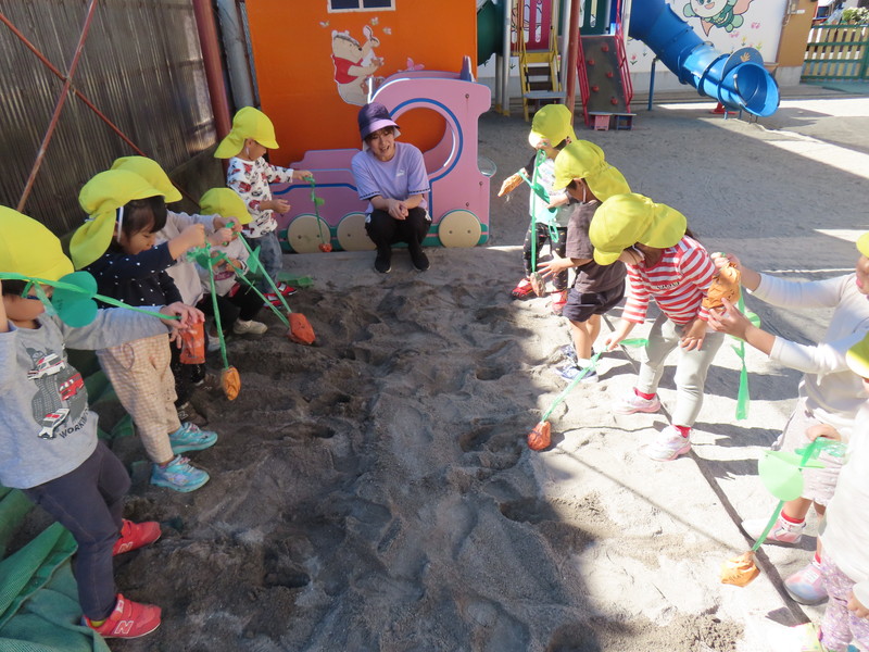 アルバム お知らせ アルバム お知らせ 今日のひとコマ【いもほり遊び】 2025年10月29日 【10月29日(水)】 芋ほり遊びをしたよ!! 今日は,3歳以上のクラスで「いもほり遠足」に行きました。 バスに乗ることができない3歳未満の子どもたちは,『いもほり遊び』で楽しみました。 そして,お昼は,待ちに待った「愛情弁当」です。 みんな大きなお口をあけて,美味しそうに食べていましたよ。 給食もたくさん食べるさくら組,ちゅうりっぷ組の子どもたちですが,いつも以上に食が進んでいました。 やはり,お家の方の『愛情弁当』にはかないませんね!! ★★ 大きく育て 紫原の宝 ★★