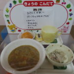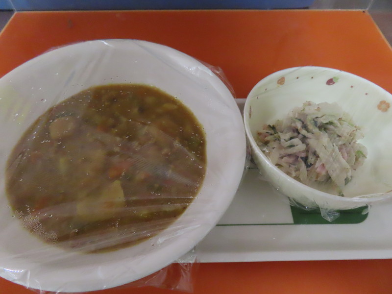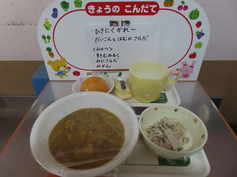 《献 立》・ひき肉カレー ・大根とハムのサラダ