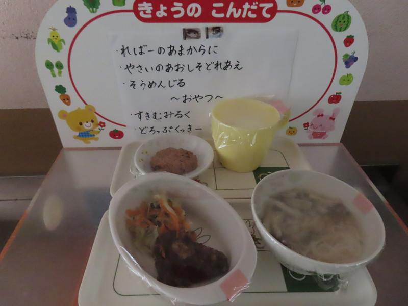 《献 立》・レバーの甘辛煮 ・野菜の青しそドレッシング和え ・かぶのスープ