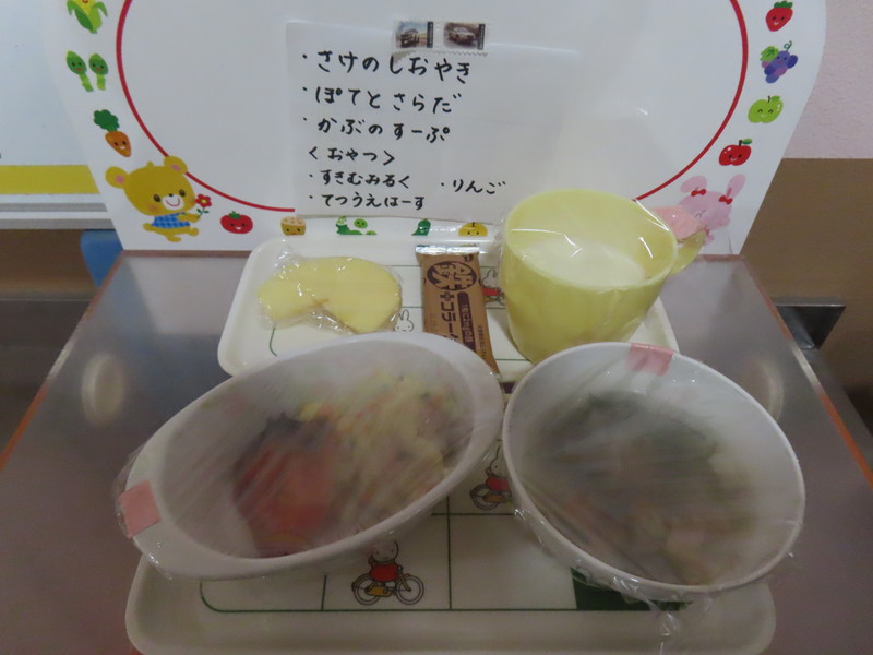 《献 立》・鮭の塩焼き ・ポテトサラダ ・かぶのスープ