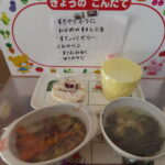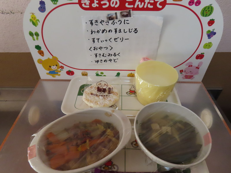 《献 立》・すき焼き風煮 ・わかめのすまし汁 ・スティックゼリー