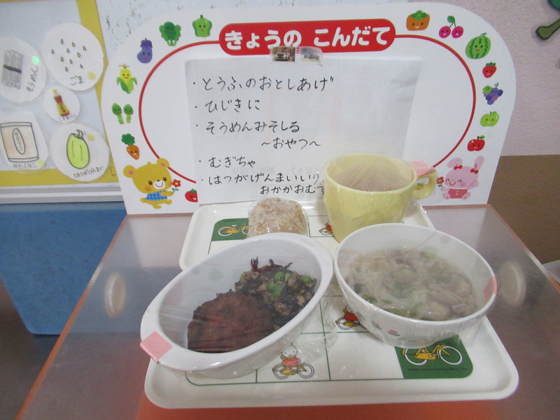 《献 立》・豆腐の落とし揚げ ・ひじき煮 ・そうめん味噌汁