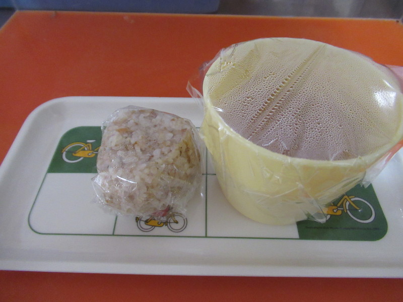 《おやつ》・麦茶 ・発芽玄米入りおかかおむすび