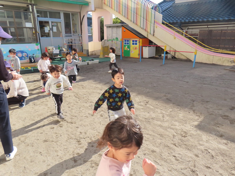子どもたちは,園庭で元気よく遊びました。