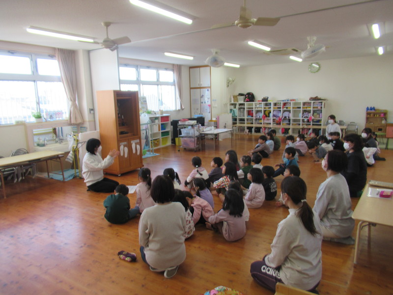 アルバム お知らせ アルバム お知らせ 今日のひとコマ【合同仏参 & 縦割り保育】 2025年12月22日 【12月22日(月)】 みんなで楽しく・・・・【合同仏参】&【縦割り保育】 今日は,今年最後の「合同仏参」を行いました。 インフルエンザと発熱で,お休みの子どももいましたが,みんなで楽しく仏参することができました。 また,うめ組,ひまわり組,たんぽぽ組合同の「縦割り保育」の第4回お試し保育も行いました。 いつも仲良く活動している子どもたちですので,安心して,楽しく過ごすことができました。 ★★ 大きく育て 紫原の宝 ★★