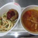 《献 立》・ハンバーグ ・スパメンサラダ ・ミネストローネ