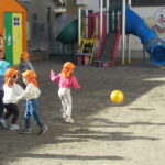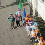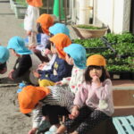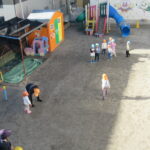 そのころ,園庭では,ひまわり組とたんぽぽ組が元気よく遊んでいました。