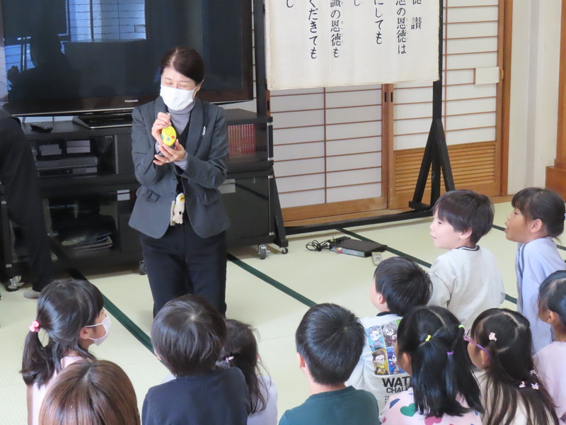 今日は,もうすぐ小学生になるうめ組さんを対象にした,『防犯教室』を行いました。