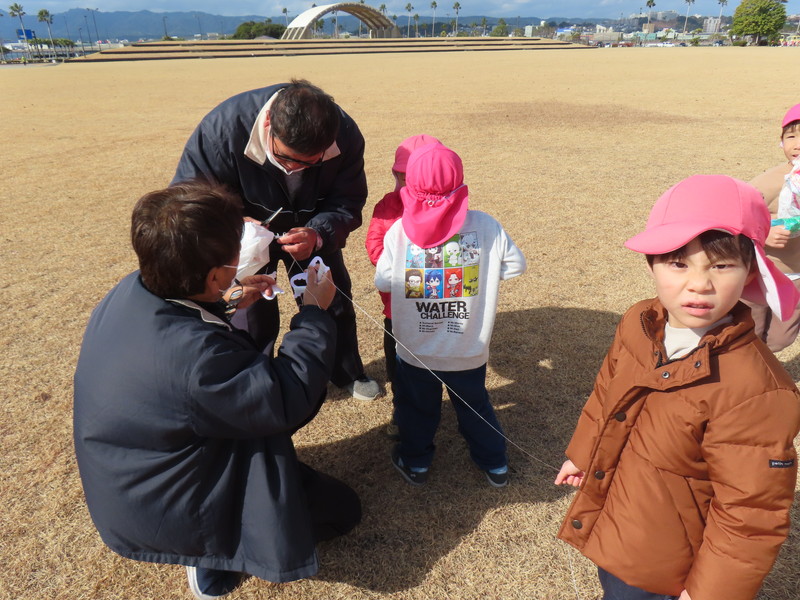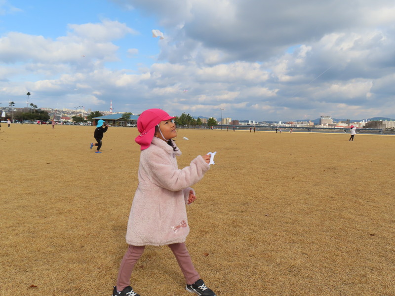 日本の伝統的遊び:たこあげをしたよ!