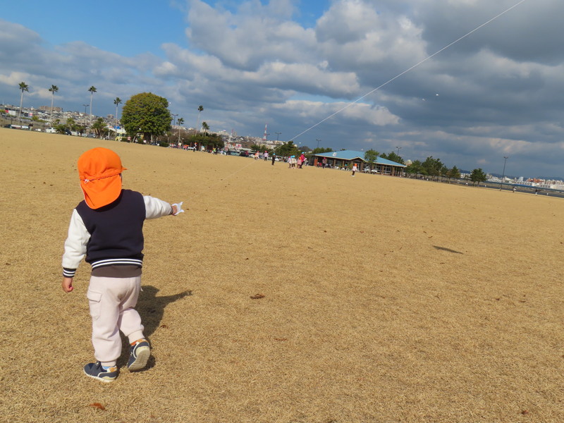 今日は,先週,作った「マイ・たこ」をもって,マリンポートに行きました。