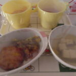 《おやつ》・麦茶 ・黒糖ミルクプリン