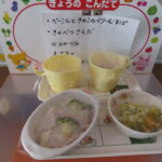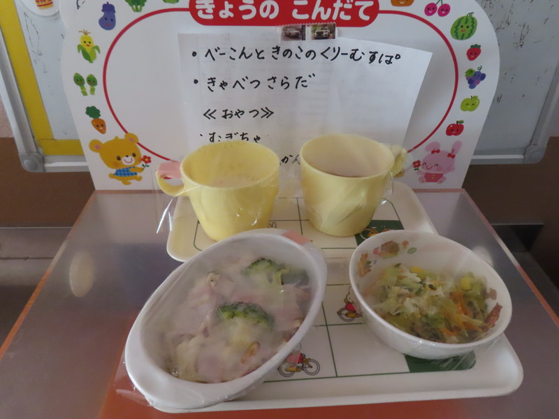 《献 立》・ベーコンときのこのクリームスパ ・キャベツサラダ