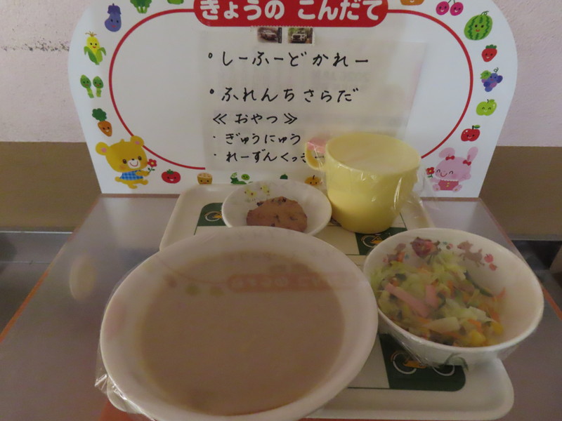 今日の給食は「シーフードカレー」。