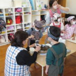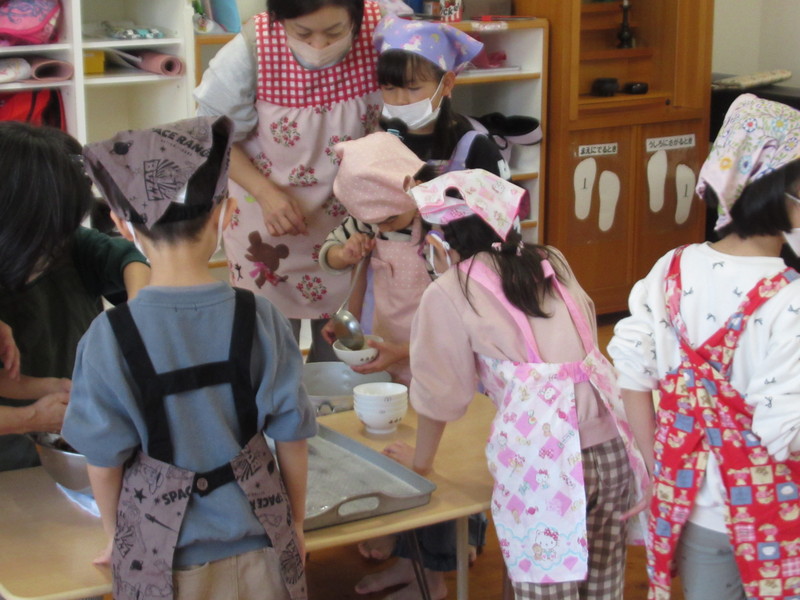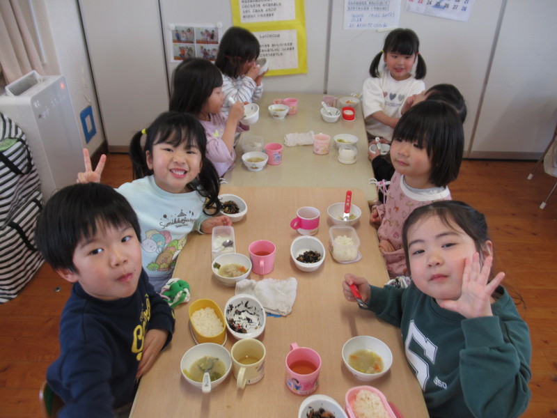 お知らせ お知らせ 今日のひとコマ【縦割り保育:試行錯誤】 2026年2月13日 【2月13日(金)】 縦割り保育:順調です! 縦割り保育をスタートして,約1か月半が過ぎました。 子どもたちも,少しずつ慣れてきて,今日も楽しく過ごしていました。 今日は,来年度を見越して,さらに充実できるように,職員で保育の相互参観をしました。 すでにうめ組が「学校ごっこ」を実施しているので,午睡をしないバージョンで,さらに,ひまわり組とたんぽぽ組は,それぞれ違った活動をしましたよ。 また,小学校就学に向けて,給食の準備をうめ組さんにやってもらい,小学校就学に向けての意識を高めました。 ★★ 大きく育て 紫原の宝 ★★