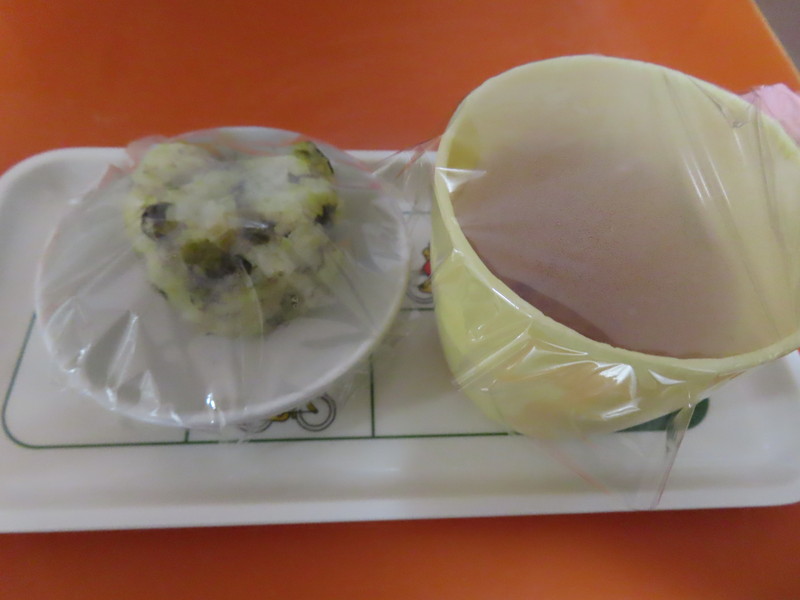 《おやつ》・麦茶 ・発芽玄米入り高菜おむすび