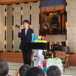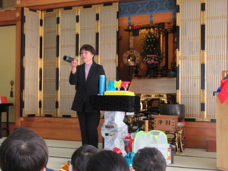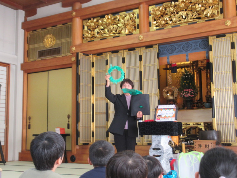 お知らせ お知らせ 今日のひとコマ【マジックショー】 2026年2月18日 【2月18日(水)】 マジックショー:うめ組・大喜び 今日は,お寺の「お達者クラブ」の行事の一環で,「マジックショー」がありました。 毎年,うめ組さんが参観させていただいていますが,今回も,いろいろなマジックを堪能しました。 御披露いただいたのは, ○筒の中から花束が飛び出すマジック ○辞典のような箱の中から,いろいろな物が出てくるマジック ○赤いスポンジのボールが,瞬間移動するマジック ○レコード(音楽用)の色が変わるマジック などなど とても楽しいひとときでした。 ★★ 大きく育て 紫原の宝 ★★