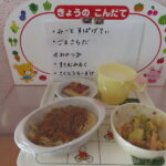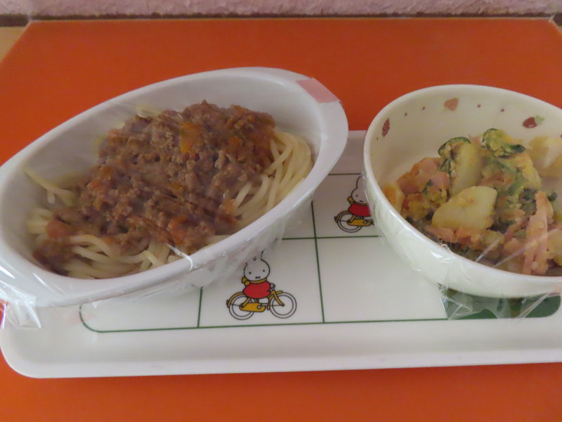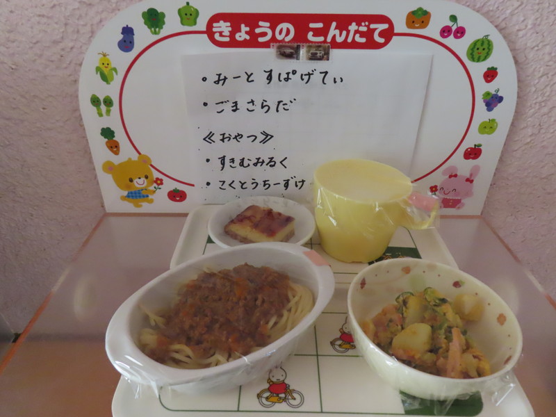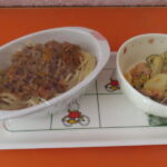 《献 立》・ミートスパゲッティ ・ごまサラダ