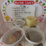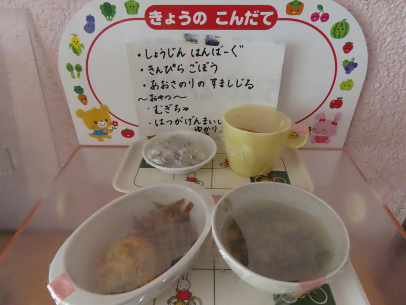 《献 立》・精進ハンバーグ ・きんぴらごぼう ・あおさのりのすまし汁