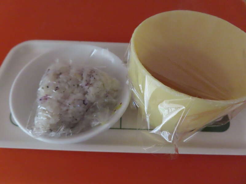 《おやつ》・麦茶 ・発芽玄米入りゆかりおにぎり