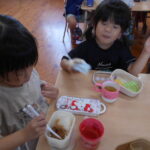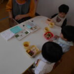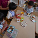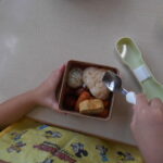 子どもたちに話を聞いてみると,「お母さんといっしょにおにぎりをにぎったよ」という声が聞こえます。