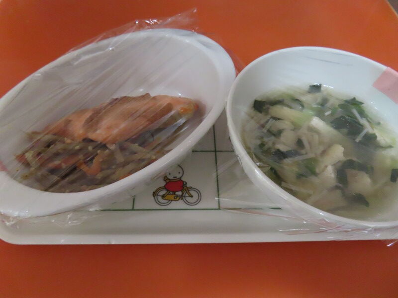 《献 立》・鮭めんたい焼き ・きんぴらごぼう ・生揚げのすまし汁