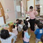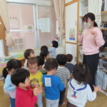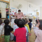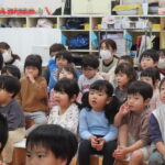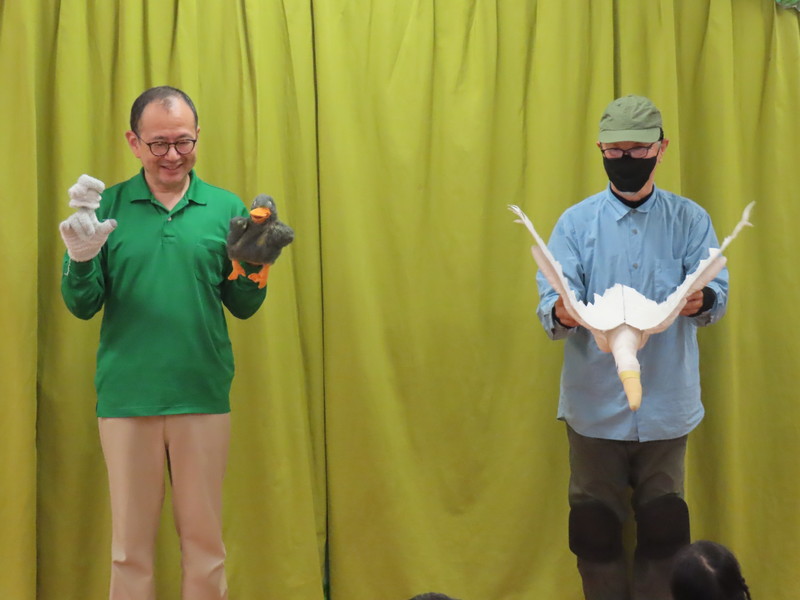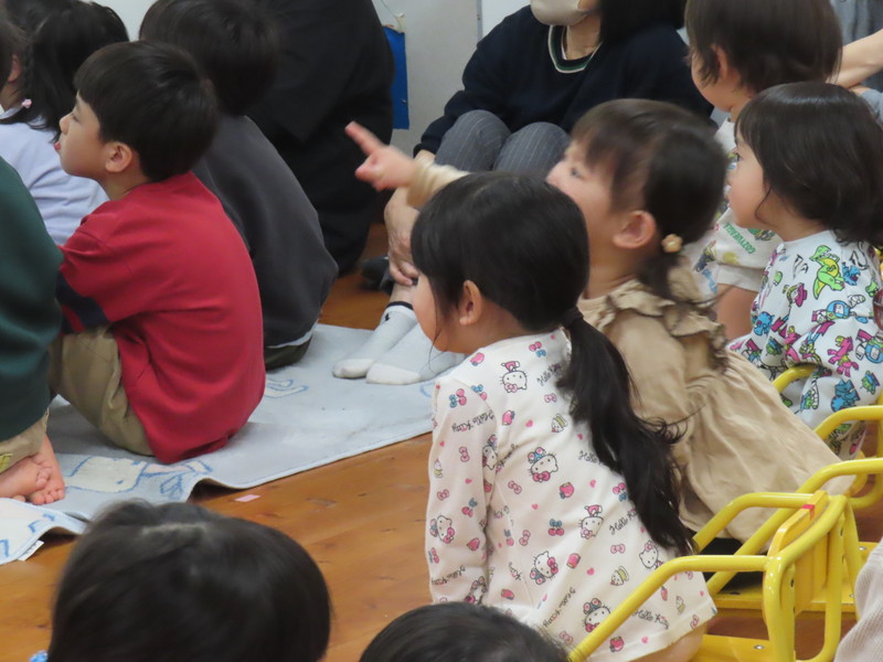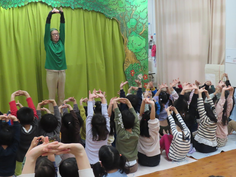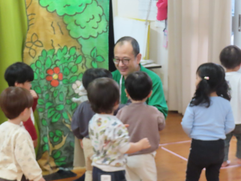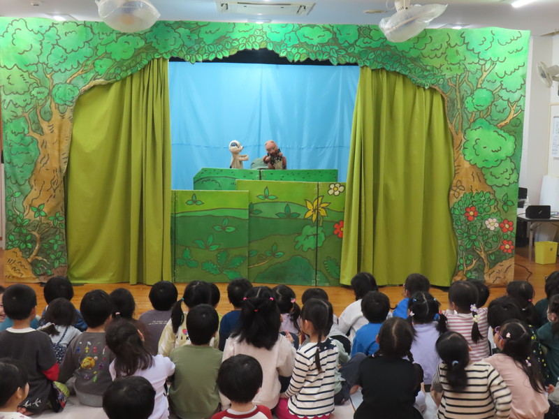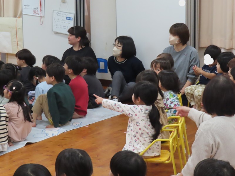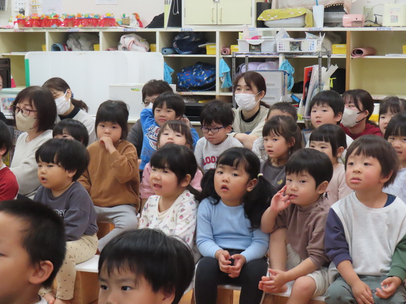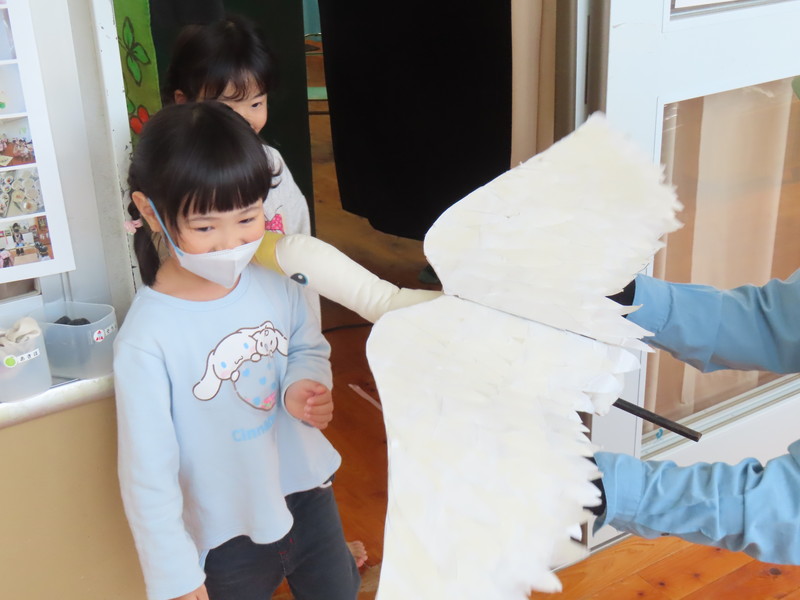 アルバム お知らせ 今日のひとコマ【人形劇を観たよ!】 2026年2月25日 【2月25日(水)】 人形劇を観たよ:『劇団:すぎの子』 今日は,埼玉県狭山市から『劇団:すぎの子』さんに来ていただいて,人形劇を観ました。 演目は,3件。 ① 赤ちゃんのおしごと ② なかよし ③ みにくいアヒルの子 子どもたちも知っている内容もあり,とても盛り上がりました。 とても身近でわかりやすい演目だったので,子どもたちは食い入るように観ていましたよ。 最後は,みんなで「はい,チーズ!」 人形ともハイタッチして,大喜びの子どもたちでした。 ★★ 大きく育て 紫原の宝 ★★