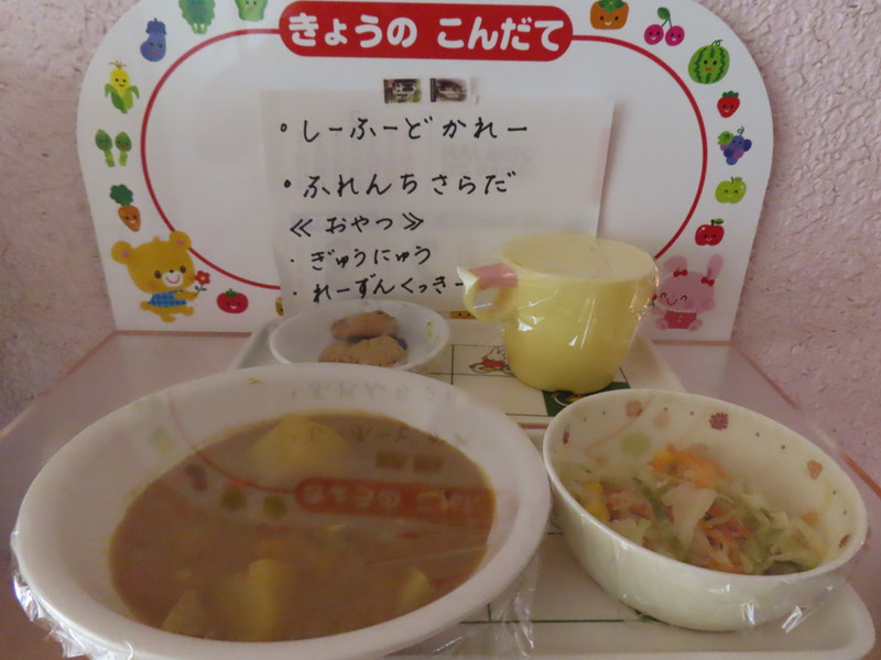 アルバム お知らせ 命の源 紫原の給食 2026年2月26日 【2月26日(木)】 《献 立》・シーフードカレー ・フレンチサラダ 《おやつ》・スキムミルク ・レーズンクッキー 今日は,これまでに作った「ひなまつり」関係の作品を持ち帰りました。 ぜひ,御家庭に飾って,「3月3日」の『ひなまつり』を盛り上げてくださいね。 給食は,日本人のポピュラー・フード,「カレー」でした。 しかも「シーフードカレー」ですから,とても美味しかったですよ。 ★★ 元気に育て 紫原の宝 ★★
