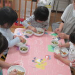 中には,「家では白ご飯に何かを混ぜないと食べないのに,ちゃんと白ご飯を食べている」とか「こんなにたくさん食べるんだ」などど,子どもたちが家庭では見せない,意外な姿に驚かれていました。