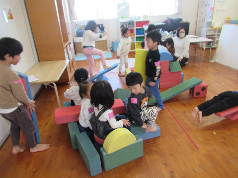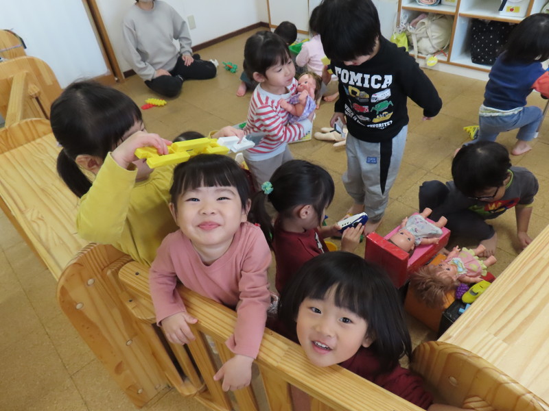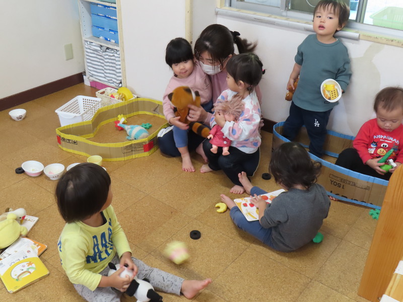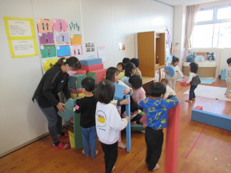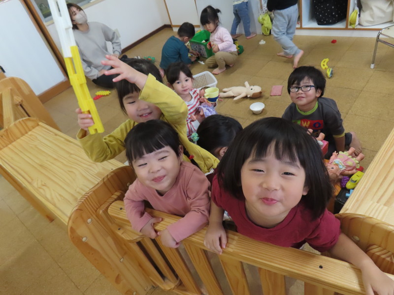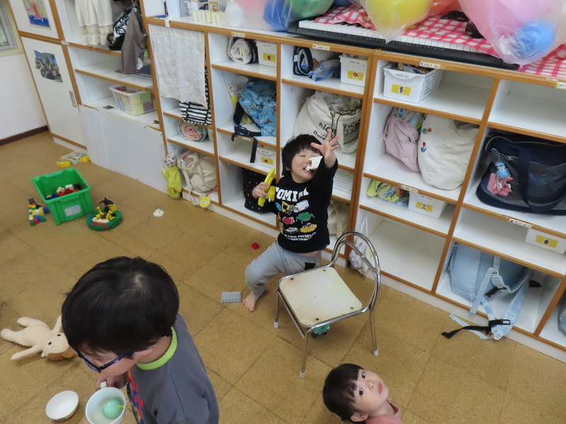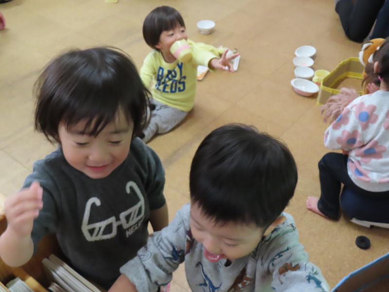 これまでも,他のクラスとの合同保育を実施していますので,全く違和感なく楽しんでいました。
