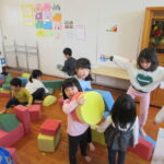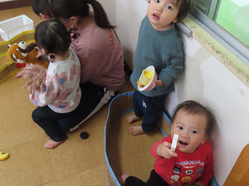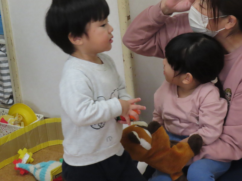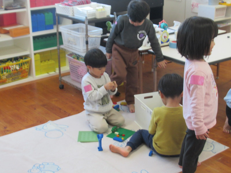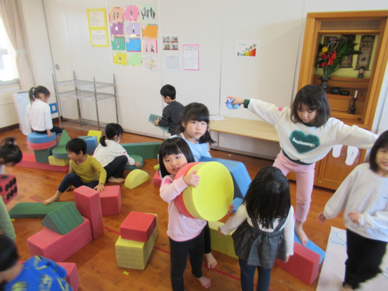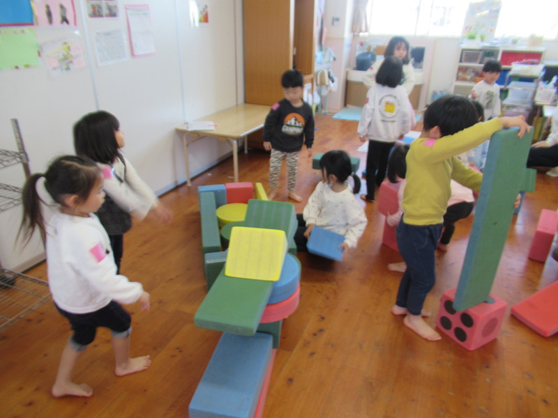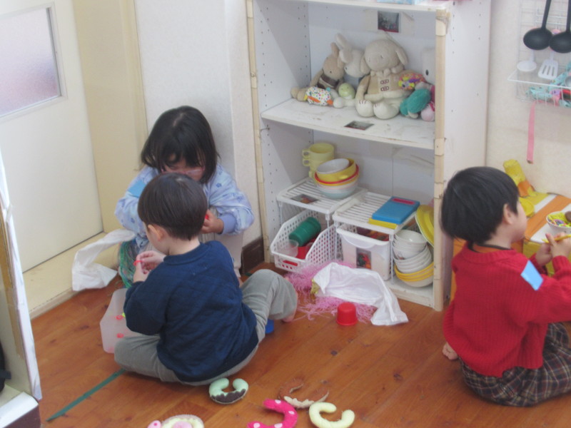これまでも,他のクラスとの合同保育を実施していますので,全く違和感なく楽しんでいました。