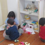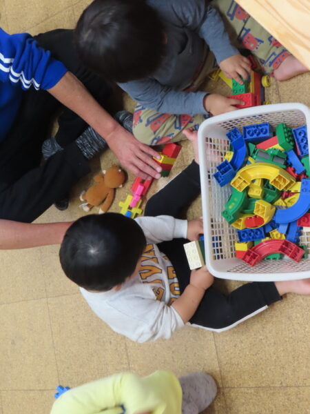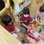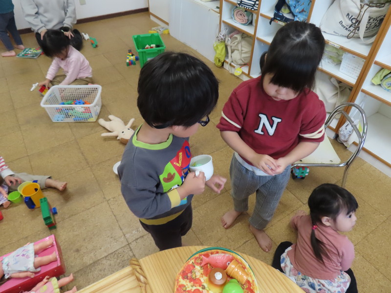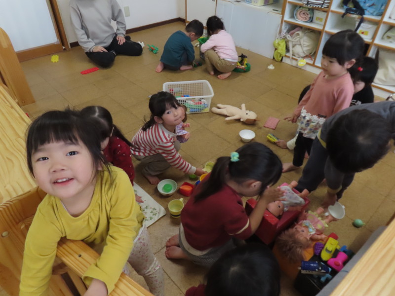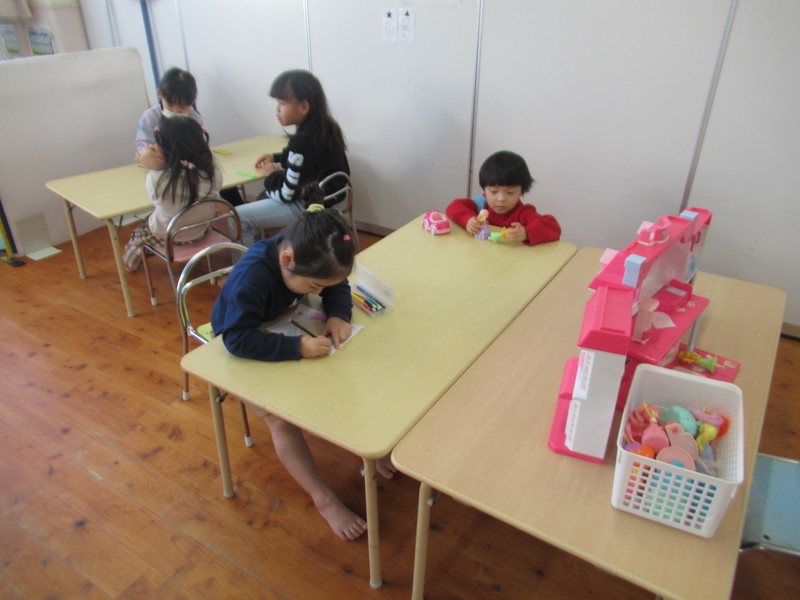 もちろん,同年齢の友達と熱中して遊ぶ子ども,一人で好きなことをしてお絵描きをする子どもなど,子どもの意識を尊重して見守ってみました。