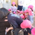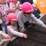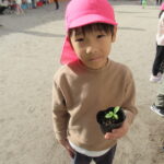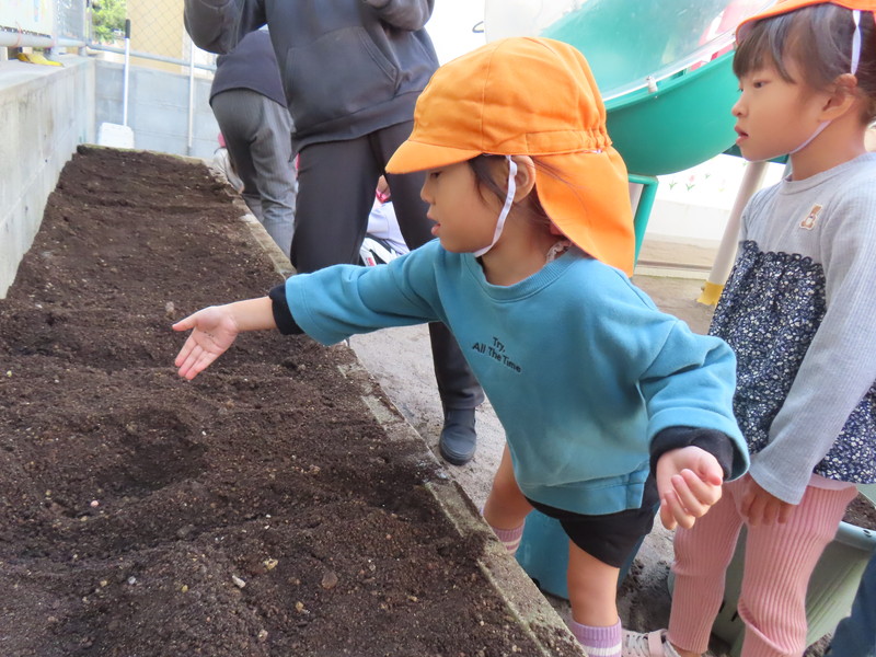 アルバム お知らせ 今日のひとコマ【うめ組:ツルコザクラ】 2025年11月28日 【11月28日(金)】 今日は,「種まき」と「仮植」の日でした。 午前中に,うめ組さんがツルコザクラの「仮植」と,二十日大根の「種まき」。 ひまわり組さんとたんぽぽ組さんが,スナップエンドウとミニキャロットの「種まき」を行いました。 みんなで「おおきくなーれ」と声をかけながら,丁寧に植えつけましたよ。 このような活動を通して,『命の大切さ』や『人・生き物・ものなどに対する優しい気持ち』が育っていくといいです。 ぜひ,御家庭でも話題にしてみてください。 ★★ 大きく育て 紫原の宝 ★★ 【ツルコザクラ】 【スナップエンドウ】【二十日大根】【ミニキャロット】